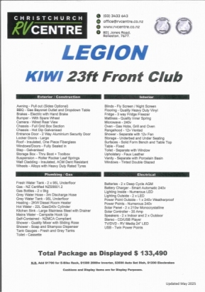 - Christchurch RV Centre is the only factory accredited Legion dealer in New Zealand.