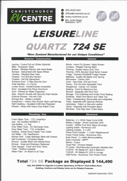 - All Leisureline caravans in stock have the SE 'South Island exclusive package'.