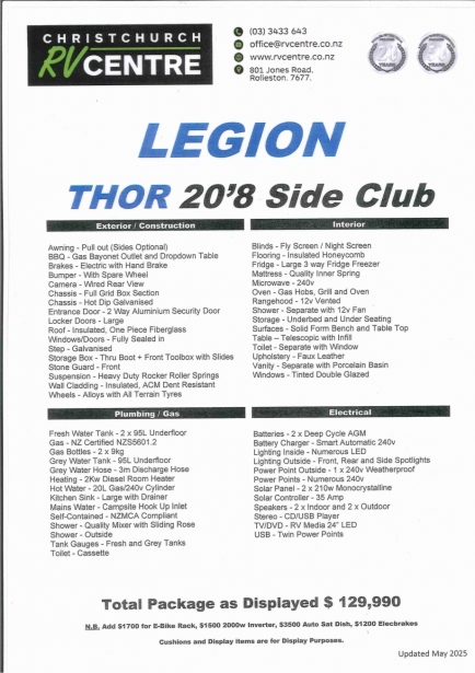 - Christchurch RV Centre is the only factory accredited Legion dealer in New Zealand.