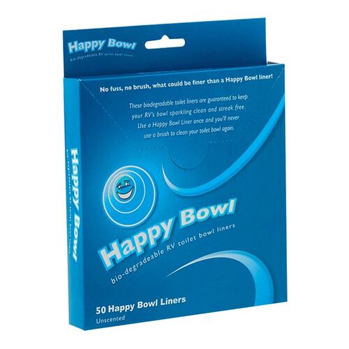 These biodegradable toilet liners are guaranteed to keep your caravan or motorhome's bowl sparkling clean and streak free.  Use a Happy Bowl Liner once and you'll never use a brush to clean your toilet bowl again.