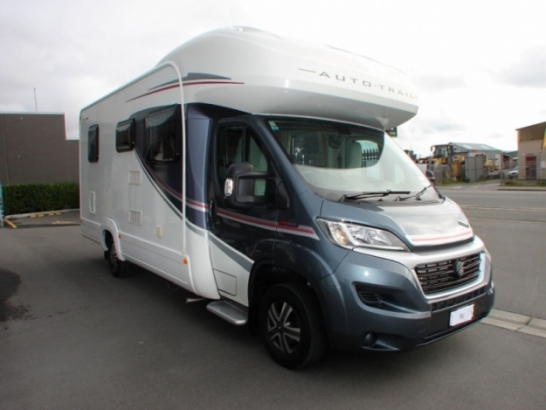 Motor Home: European manufactured by Autotrail, 2 Berth including permanent double bed, many extras including - 3 burner gas hobs, grill & oven, 3 way fridge freezer (95L), gas hot water, roof mounted solar panel (160w), gas/electric room heater, LED lighting throughout, 12v LED Television, Automatic satellite TV dish, fresh water tank (135L), grey water tank (85L), separate shower, separate cassette toilet, hand basin, wind-out awning, self contained, superb condition, curb side entrance door.